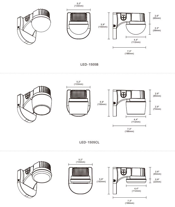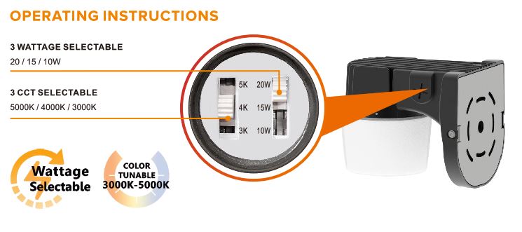 Model Number LED-1505B LED-1505CL LED-1505C System Wattage 20/15/10W Delivered Lumens (Lms. based on highest wattage 5000K) 2701 lm 2671 lm 2607 lm Efficacy (Lm/W based on highest wattage 5000K) 140 lm/W 136 lm/W 135 lm/W Color Rendering Index (CRI) 80+ Color Temperature (CCT) 3000K / 4000K / 5000K Input Voltage 120~277VAC Distribution Type III Type III Type II